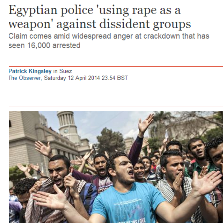 صحيفة الجارديان البريطانية نقلت عن اثنين من معارضي السلطات المصرية -أحدهما قبطي- أنهما تعرضا للاغتصاب والضرب والصعق بالكهرباء أثناء احتجازهما من قبل قوات الأمن.. وهو ما يدل على أن الحكومة تتبنى حملات قمعية ضد المعارضة بكافة اتجاهاتها.. وفق ما أكدته الصحيفة.
