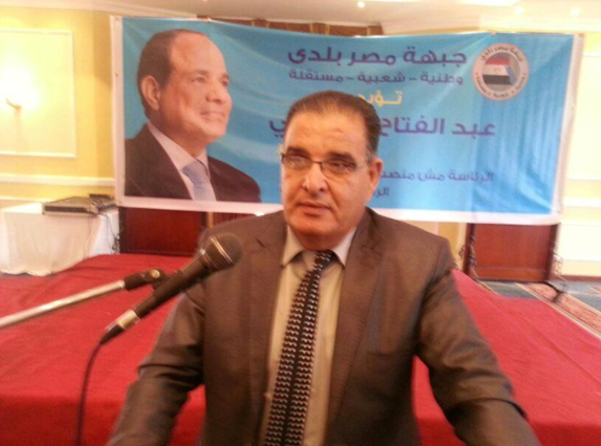 وإذا اتجهت بعيدا إلى شمال سيناء، ستجد يسري جاسر أبوشيتة – أمين تنظيم الحزب الوطني بشمال سيناء متحدثا بمؤتمر جبهة مصر بلدي لدعم السيسي.