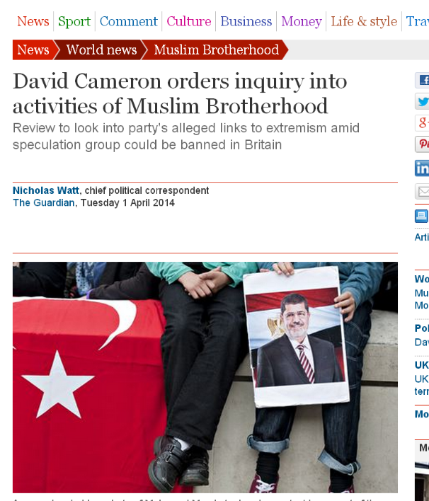 لكن مسؤولين بريطانيين استبعدوا حينها أن يؤدي هذا التحقيق إلى حظر أنشطة الجماعة في البلاد.. وحذر أحد المسؤولين في ذلك الوقت من مخاطر تحول أنصار منظمة معتدلة تسعى من أجل الديمقراطية إلى التشدد. كما أرجعت صحيفة الجارديان البريطانية سبب إصدار قرار التحقيق في أنشطة الإخوان إلى ضغوط يتعرض لها رئيس الوزراء ديفيد كاميرون ليحذو حذو مصر والسعودية وإعلان الإخوان جماعة إرهابية.