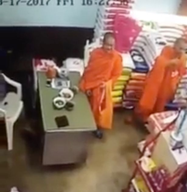 وظهر الراهب في الفيديو بأحد متاجر الأرز في تايلند وهو يشتري بضائع، وبعد أن وصل إلى أحد المكاتب وجد هاتف “آيفون” فوقه، فالتقطه بسرعة ودسه في جلبابه واستمر في السير والتسوق وكأن شيئا لم يكن، وبعدها انصرف من المكان.