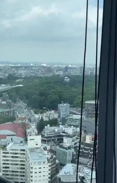 رأى سكان العاصمة اليابانية طوكيو مشهدًا غير عادي، اليوم الجمعة، عندما ظهر رأس عائم عملاق فوق حديقة يويوجي في المدينة.