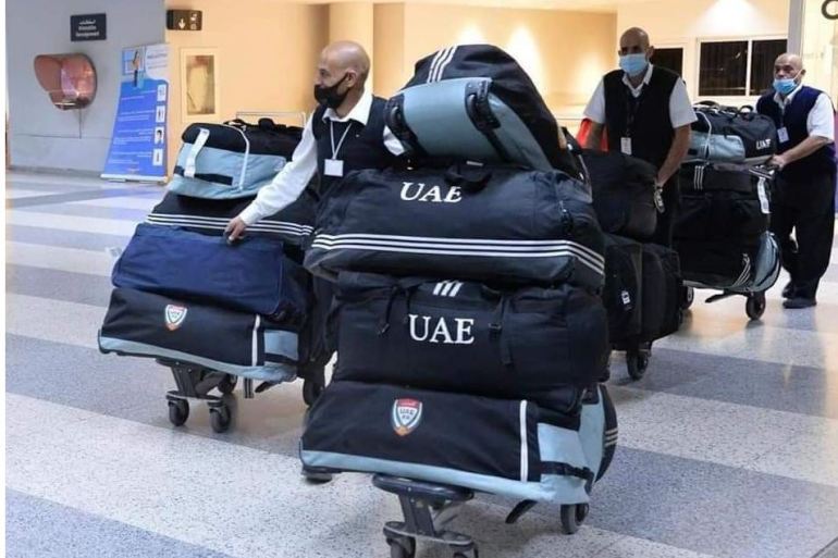 أثارت صور أظهرت لاعبي المنتخب الإماراتي لكرة القدم وبحوزتهم حقائب ضخمة لدى وصولهم مطار رفيق الحريري بالعاصمة اللبنانية بيروت، الأحد، جدلًا وتساؤلات على مواقع التواصل.