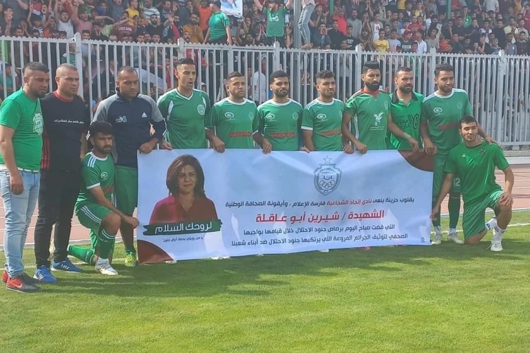 وتصدرت المدرجات التي امتلأت بالمشجعين صور لشيرين أبو عاقلة مكتوب أسفلها عبارة “لن يخمدوا صوت الحقيقة”.