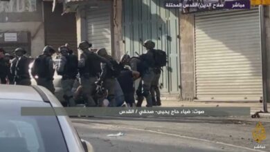 قمعت شرطة الاحتلال الإسرائيلي، مساء الأحد، مسيرة أعلام فلسطينية في شارع صلاح الدين، وسط القدس الشرقية المحتلة. وأطلقت الشرطة على المشاركين بالمسيرة الرصاص المطاطي وقنابل الغاز والصوت في محاولة لتفريقهم، وفق شهود عيان. وقالت مراسلة الجزيرة إن قوات الاحتلال اعتقلت فلسطينيين بينهم أطفال عقب المسيرة. واعتدت قوات الاحتلال على…
