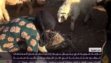 حكاية نازحة اضطرتها الظروف إلى التعامل مع مخلفات الحيوانات لاستخدامها كوقود (فيديو)