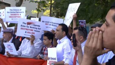 نظمت الجالية اليمنية في نيويورك بالولايات المتحدة الامريكية، وقفة احتجاجية أمام مقر الأمم المتحدة، للتنديد بما وصفوها بـ”جرائم دولة الامارات” في اليمن. جاء الاحتجاج بعد قصف الطيران الإماراتي لقوات الجيش اليمني في مدينتي عدن وأبين. التفاصيل شارك مئات المتظاهرين اليمنيين في الوقفة الاحتجاجية التي دعت لها الجمعية اليمنية الأمريكية، السبت،…
