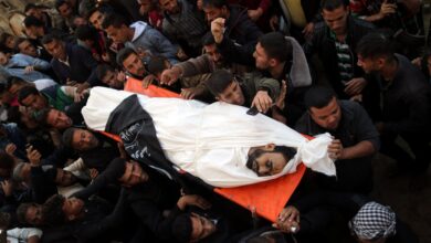 شيع فلسطينيون اليوم الاثنين جثامين 7 شهداء سقطوا على أيدي قوات الاحتلال الإسرائيلي أثناء محاولتها التوغل داخل قطاع غزة. وظهرت والدة أحد الشهداء في مقطع فيديو وهي تقوم بتقبيله بينما تودعه للمرة الأخيرة، قائلة إنها تودع “العريس”. ما بعد العملية: خيّم الهدوء على الحدود بين قطاع غزة وإسرائيل اليوم بعد…